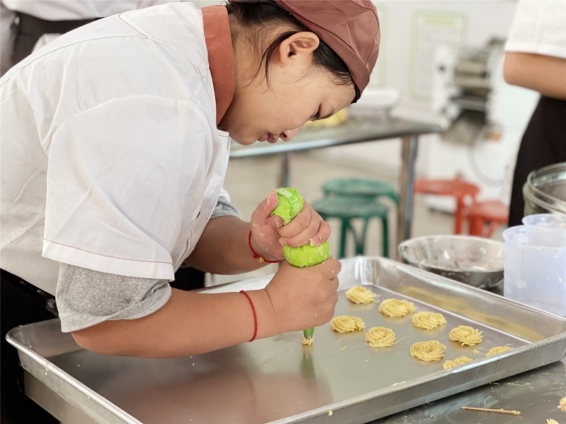 烘培社主要以制作中式面点与西式面点为主,让同学们体验烘培带来的快乐。中式面点制作品种主要有苏式豆沙月饼,菊花酥,桃酥,椒盐圆腰酥,蟹壳黄,各种象形酥点等。