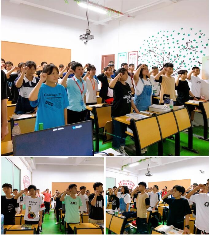 同学们认真聆听领导的谆谆教诲,内心不禁涌起了对校园生活的向往,对未来学习生涯的自信笃定。随后,在各班班主任的带领下,全体同学起立,紧握右拳,目光坚毅,高声朗读誓词: