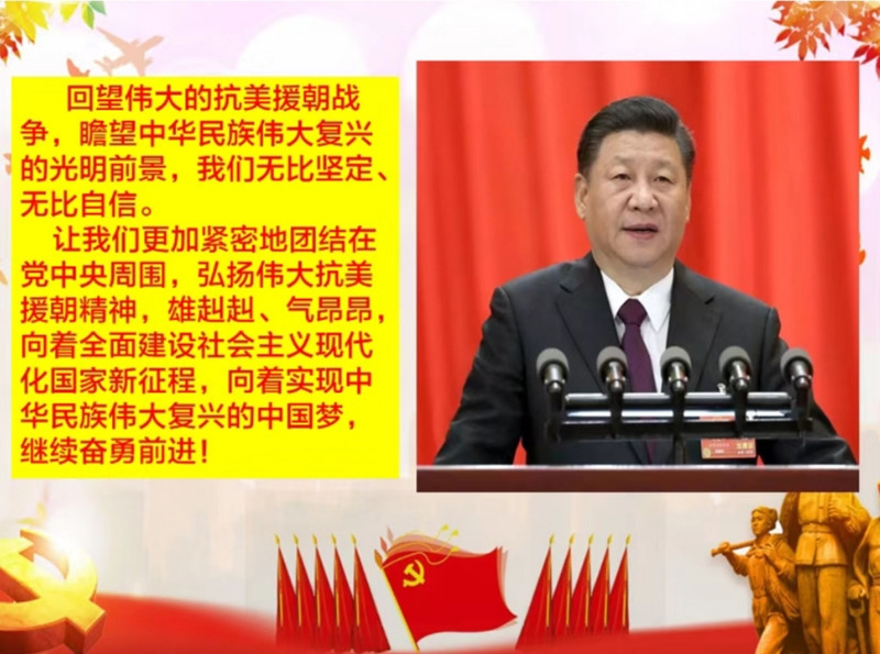 为深入贯彻落实习近平总书记在纪念中国人民志愿军抗美援朝出国作战70周年大会上的重要讲话精神,深入开展“四史”学习教育,大力弘扬伟大的抗美援朝精神,教育引导我校师生厚植爱国主义情怀,南方爱迪精心组织全体教职工观看大型纪录片《为了和平》系列学习活动,领会精神,学习提升,加强新时代爱国主义教育,营造了矢志奋斗奉献的良好氛围。
