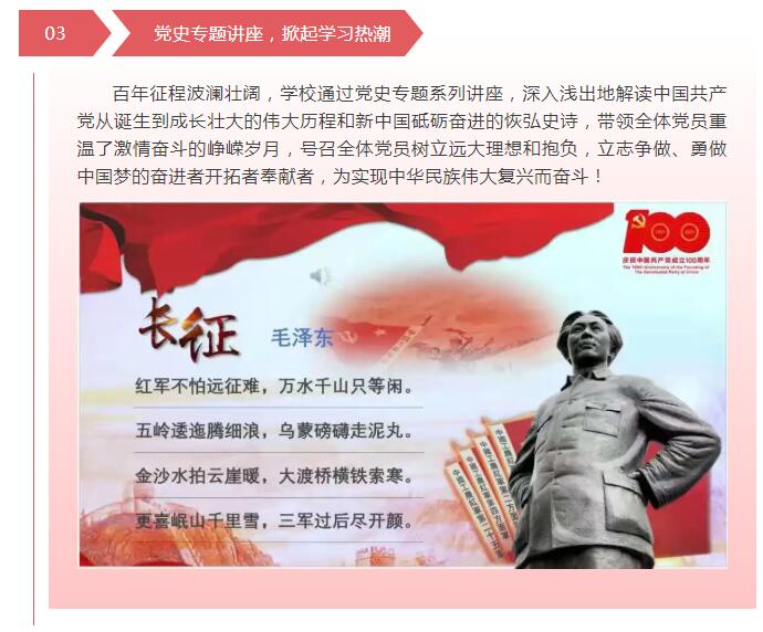 2021年7月1日我们迎来了中国共产党百年华诞。站在这个重大历史节点上,回望过往的奋斗路,学校全体师生心潮澎湃,豪情满怀。