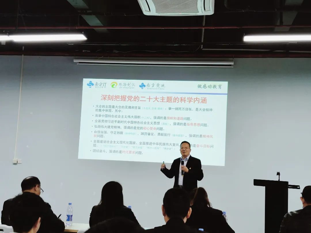 党建赋能,产业第一|珠海市南方爱迪技工学校随富山工业园企业代表到访智造大街并分享二十大学习心得