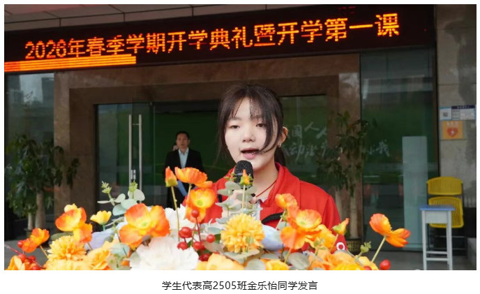 学生代表高2505班金乐怡同学的发言,带来了属于年轻人的朝气。“感谢老师的辛勤付出,也感谢过去努力的自己。新学期,我们要做更好的自己!”简短有力,说出了大家的心声,也点燃了全场的热情。