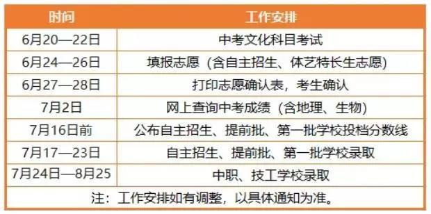 2019珠海中考考中、考后主要工作日程表