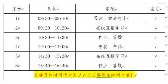 班主任全程参与网络教学活动,为家长和学生在线答疑,贴心指导平台的使用,启用电子缺席单,督促学生按时上课,与任课老师沟通上课情况,合理安排学习时间,使学生劳逸结合。