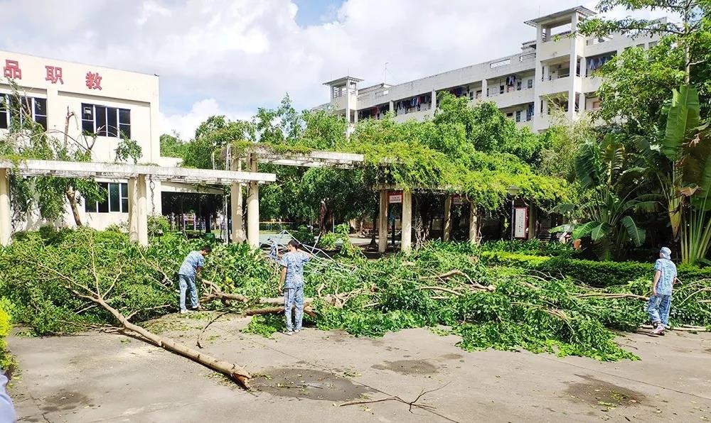 台风过后,南方爱迪技工学校美丽的校园也遭受了不小“打击”,树木倾倒、落叶满地、污水横流,放眼望去一片狼藉。学校领导十分重视灾后校园重建,督促各部门即时展开各项恢复工作,在保障全体师生安全的情况下,确保学校能尽快恢复正常的教育教学活动。
