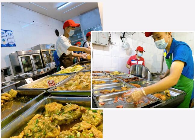 饭堂对于对同学们的伙食也没懈怠,食堂小哥已经颠好打菜勺等着我们的到来。各种各样热腾腾的饭菜,挑逗着我们的味蕾,每一样,都是久违的校园味道。间隔一米打饭的隔离带不仅没有疏远距离,还让彼此的心更加近了,心里的暖意只因一个细节而更加感动。
