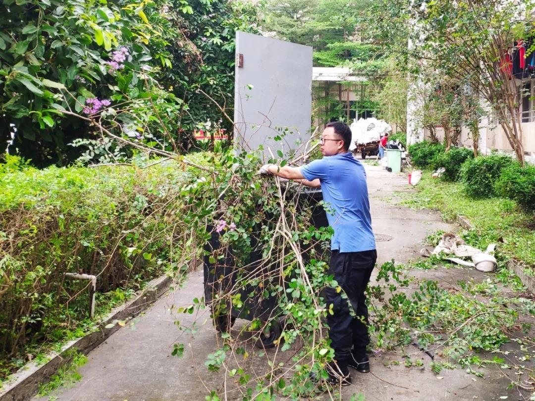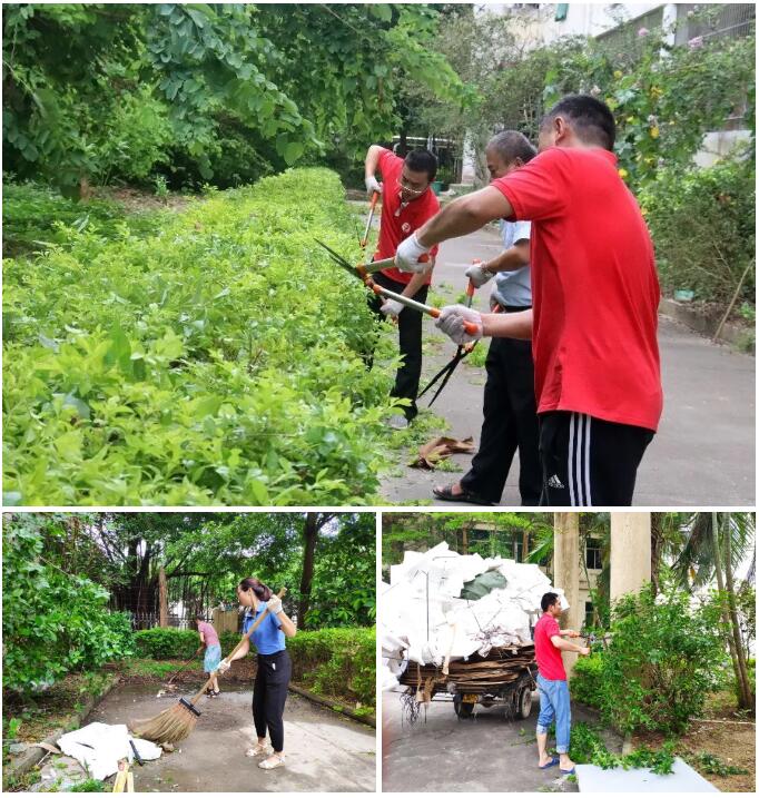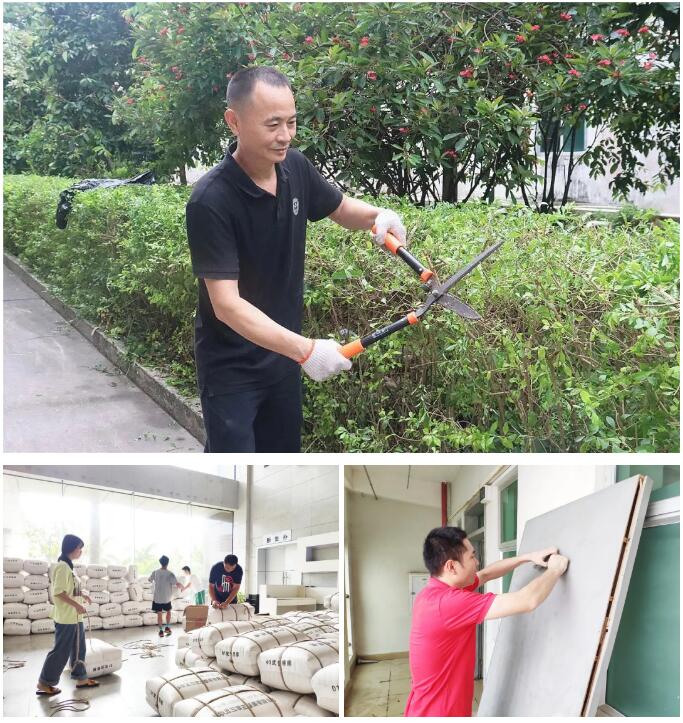校园内也是一派忙碌的景象,校道上、大树下、花丛里随处可见义工们除草清扫、修剪枝叶的奋战身影,他们用自己的“十八般武艺”检修装扮校园!