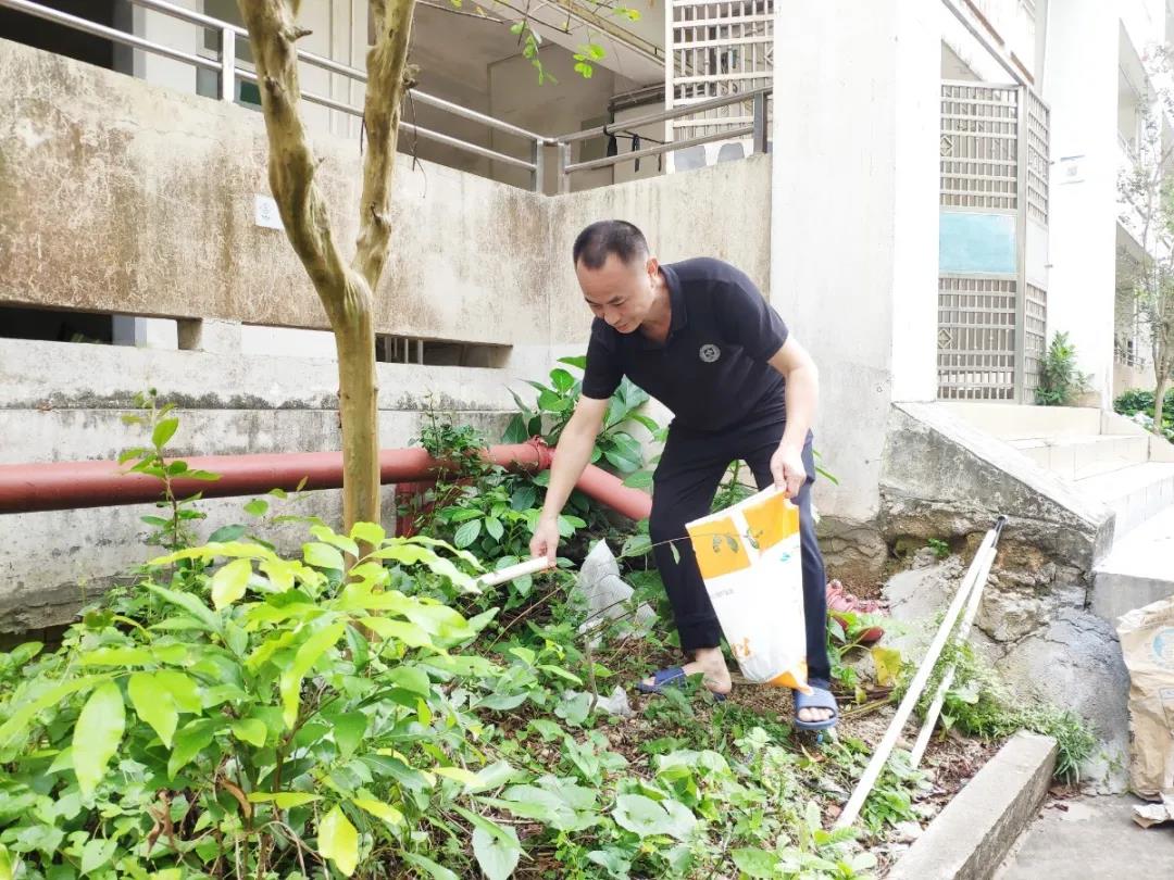 志愿服务队各组负责人带领成员热火朝天地开展篮球场、文化长廊、鱼池、教学楼、羽毛球场、学生宿舍等关键区域的清扫活动!