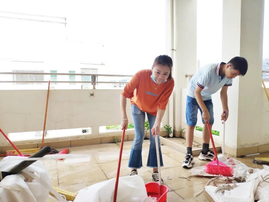 活动过程中,师生们激情满满,变身保洁员,顶着炎热,丝毫不怕脏不怕累,顷刻撸起袖子,干劲十足、汗流浃背,在身体力行中,以匠心、爱心、用心和爱心,为新生们营造了一份舒适温馨的生活氛围,传递着对新生的浓浓关爱!