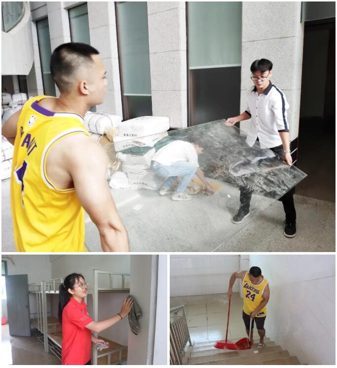 经过一天的辛勤劳动,新生宿舍、校园在他们的劳作中全部“换上新颜”,变得bling~bling~哒,呈现出整洁亮丽、清新舒适的新气象!