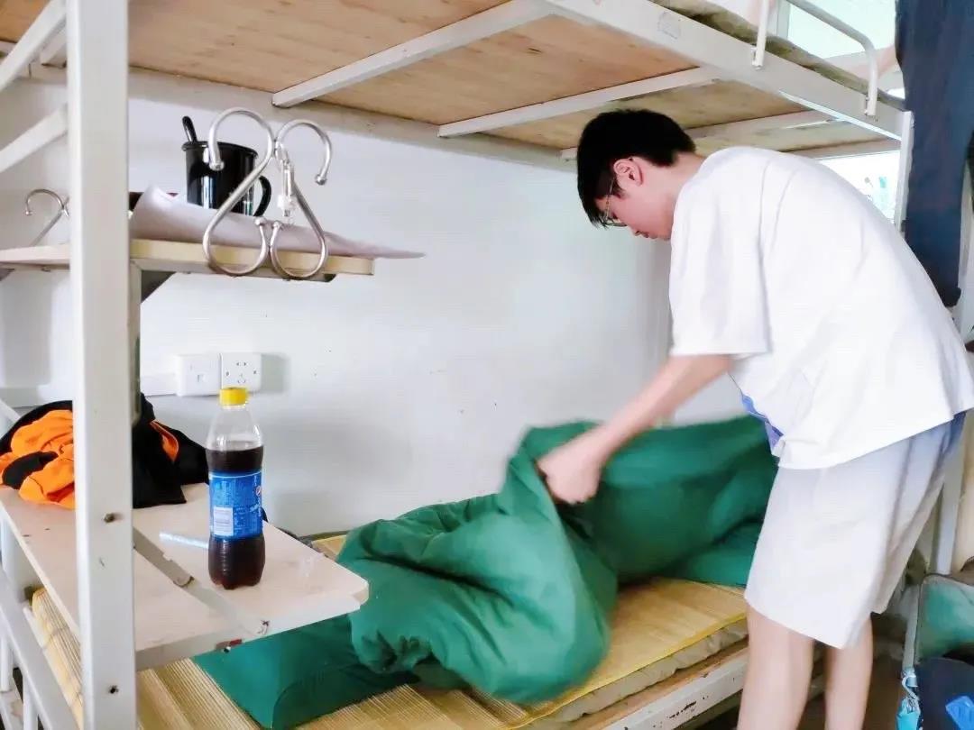 有句话叫:出门看队伍,进门看内务。整理内务,是我们培养良好生活习惯的开端。一屋不扫何以扫天下?在新生文化大课堂中,同学们就和宿舍来了一次“亲密约会”。