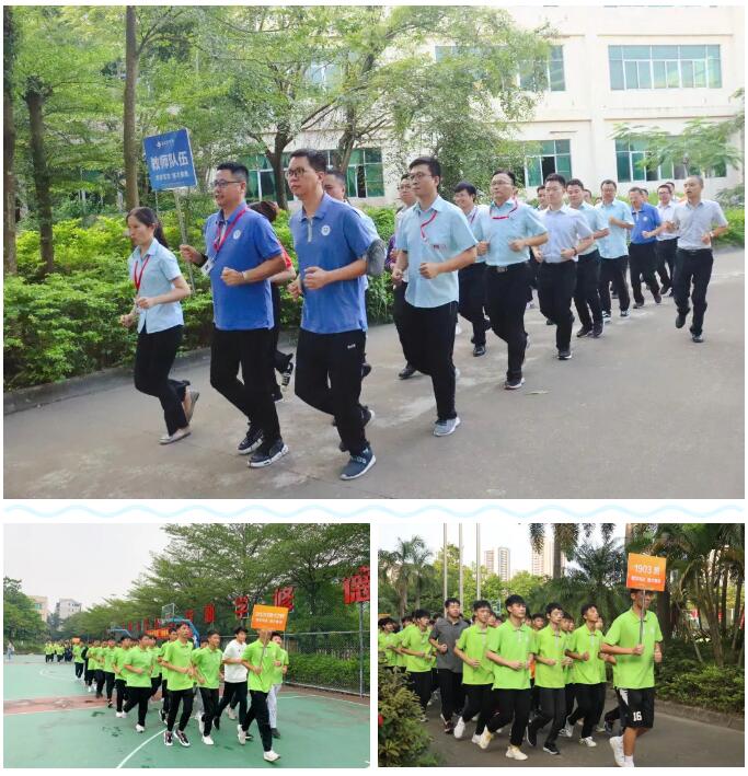 师生一起参加健康跑操
