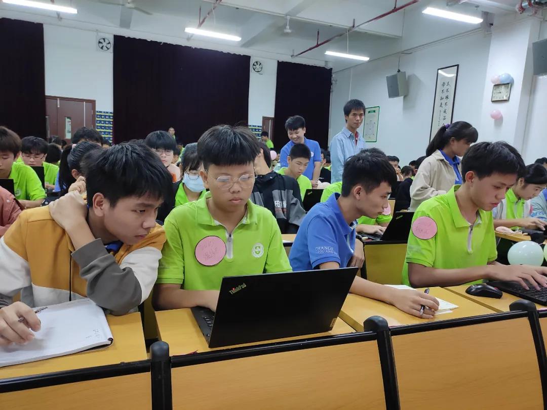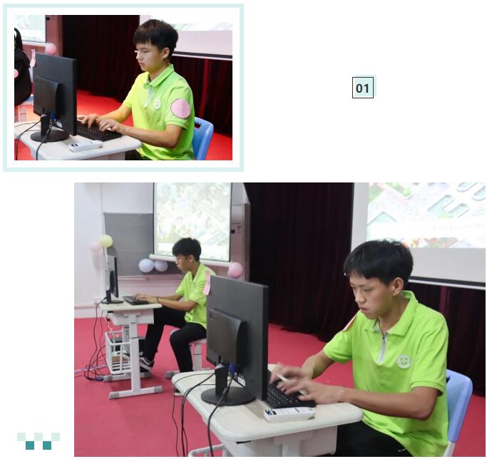 时间在键盘敲击声中一点点流逝,第一轮比赛终完结。在第二轮中,学生随机抽取文章,以快速度完成输入。同学们立马沉浸其中,一时间,速度与激情齐飞,指尖与按键共舞。每一个参赛者认真细心地输入每一个字符,务求又快又准!