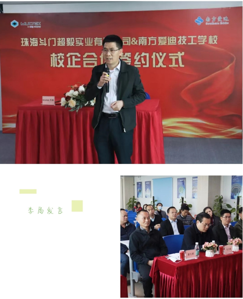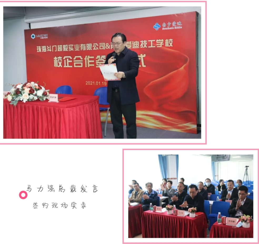 在签约仪式上,超毅实业总裁马力强先生发表了热情洋溢的开场辞。马总对本次合作充满了信心,他表示此次与南方爱迪的合作,既是公司的重大人才发展战略,也是人才引进领域的新突破,是校企优势互补、合作共赢的见证!