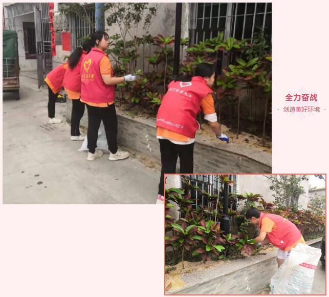 马路、草丛是人们频繁经过的地方,为了给村民营造了一个干净、卫生的居住环境,师生们更是铆足了劲,运用拔、扫、铲、抬等各般武艺,不放过任何一个卫生死角,村子中到处都可以看到大家全力奋战的身影。