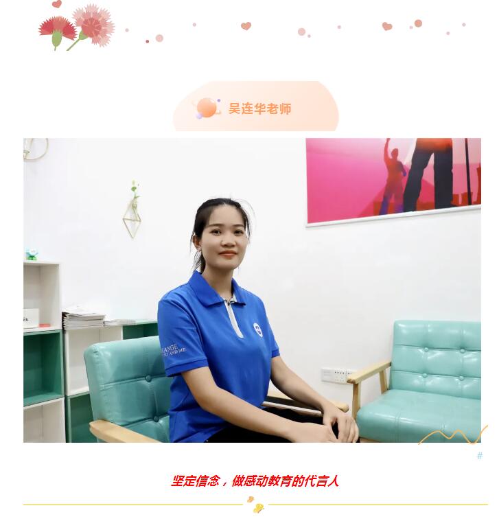 对于教育,我有自己的一份信仰。我一直坚信,每一个学生都是待挖掘的金子,他们终将会有发光的一天。而我们作为一名教师,需要给他们足够的时间,要有耐心,让学生感受到我们的关爱,真正做到感动教育。