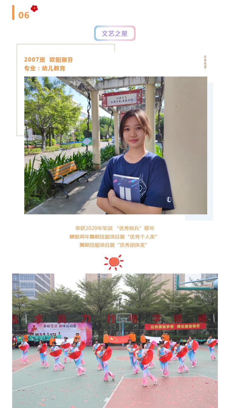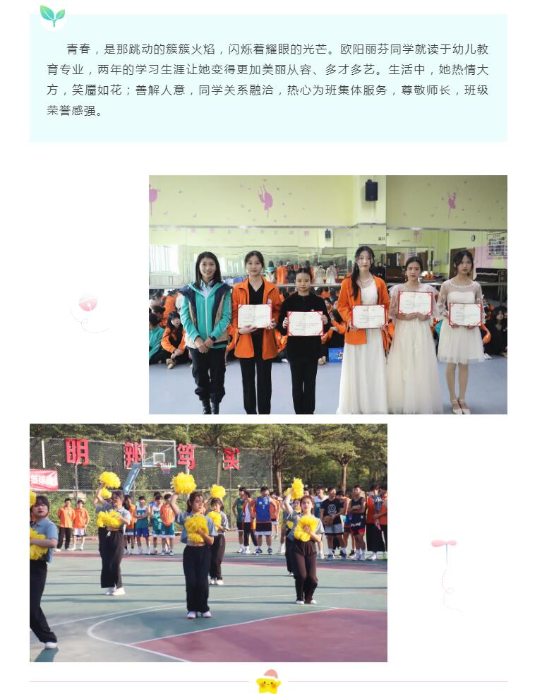 她热爱生活,兴趣广泛,积极参加校内外文体活动,促进德智体美劳全面发展,她骨子里的优雅气质,常常会在不经意间将我们打动。