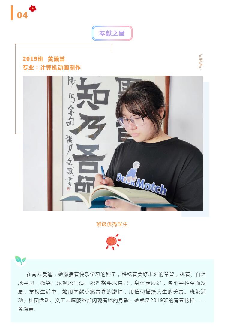 聚焦“校园之星”,他们品学兼优、感恩重责,他们乐观进取、博学笃行......我们用镜头捕捉着他们的真善美,记录着他们在南方爱迪的成长足迹.....让我们一睹南方爱迪青春榜样学子的风采吧!