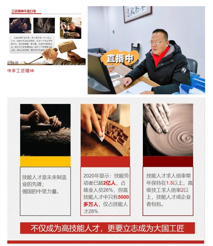 本次讲座由学校党支部书记莫拥军主讲,从“什么是工匠精神”、“呼唤工匠精神对国家、企业的重要意义”、“如何树立并培养工匠精神”等三方面进行阐述,为同学们讲述国家动人工匠故事和技能故事,引导技工学子学习传承劳动模范、大国工匠身上精益求精、爱岗敬业、守正创新的品质精神,帮助青年学生树立技能成就精彩、奋斗正当其时、争做新时代技能工匠的观念。