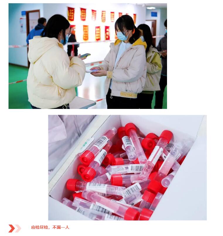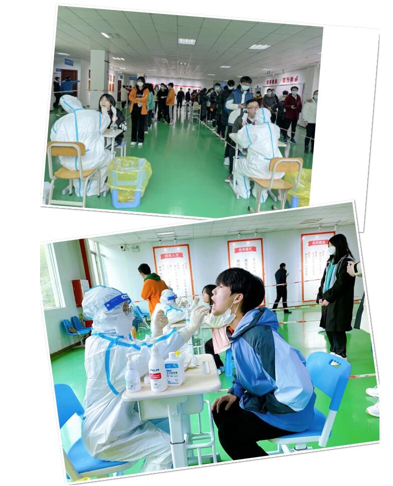 本着“应检尽检,不漏一人”的原则,我校提前部署和落实通知,严格按照防疫要求对检测场所进行分区布置,并设置专人专岗,进一步规范检测流程,划定等候区、隔离区、登记区以及采样区,采取分时段、分年级采样。