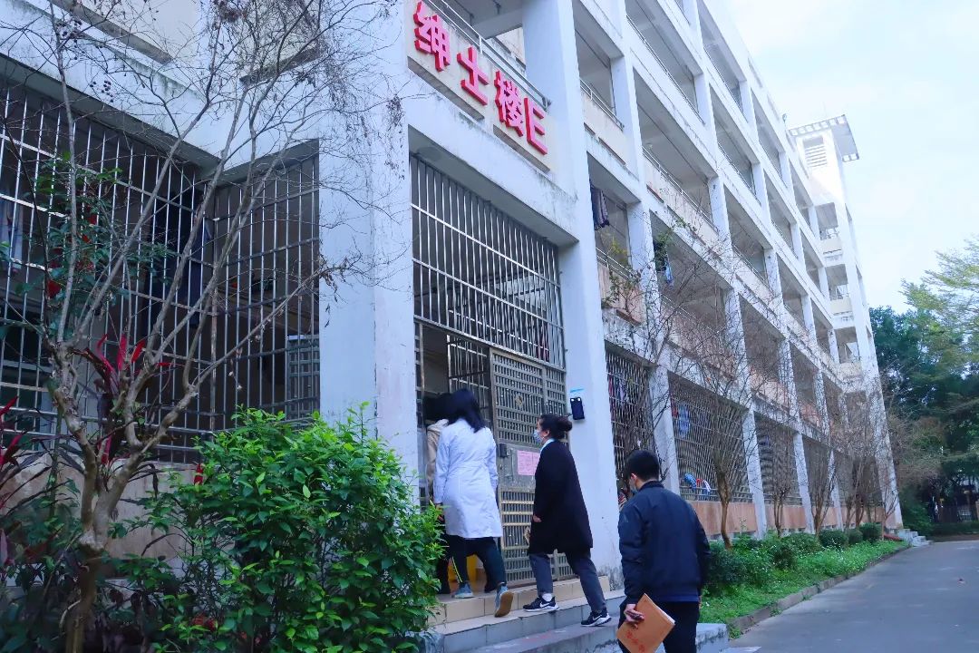 刚踏入校门,一行领导对我校保安室向来访人员进行测量体温的做法表示肯定,同时叮嘱大家要做好自身防护,筑牢疫情防控墙,全力维护师生健康,营造安全稳定的校园环境。