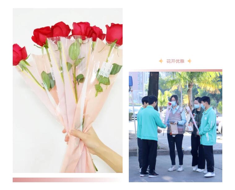 守候在校门,为每一位女老师献上鲜艳的玫瑰