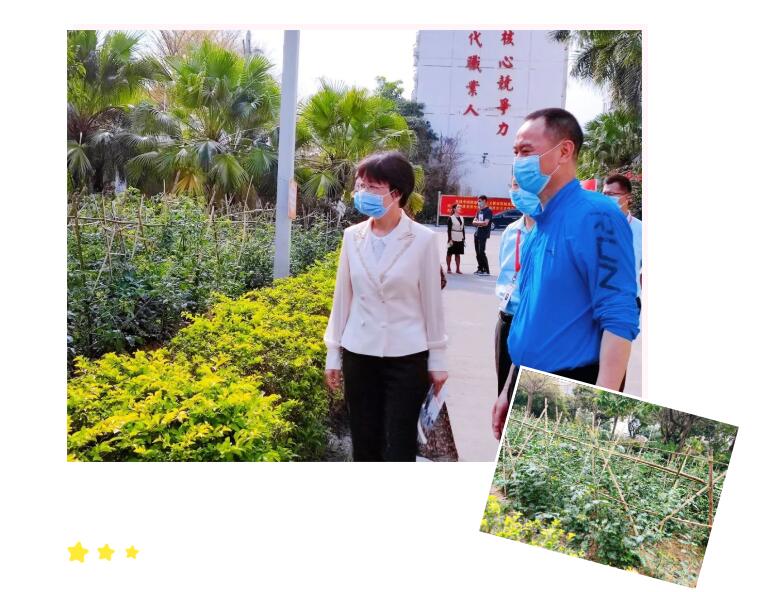 调研组察看校园义工栽种的蔬菜