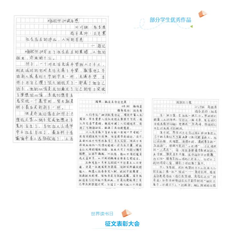自征文活动开展以来,同学们积极参与、踊跃投稿,写作阅读热情十分高涨,参赛作品主题突出,分别以“阅读”、学习力书籍、名著著作的思考等为主题, 涌现出了一批生动感人、见解独特、内涵丰富的作品。同学们用生动细腻的笔触抒发真挚情感,分享书本内容及自己的感想或见解,反映出当代青年学子良好的精神风貌和对理想的执着追求。