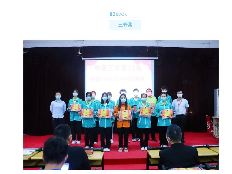 随后,由主持人宣读获奖学生名单并予以颁奖,本次比赛共评选出一等奖2名、二等奖 6 名,三等奖 12 名。