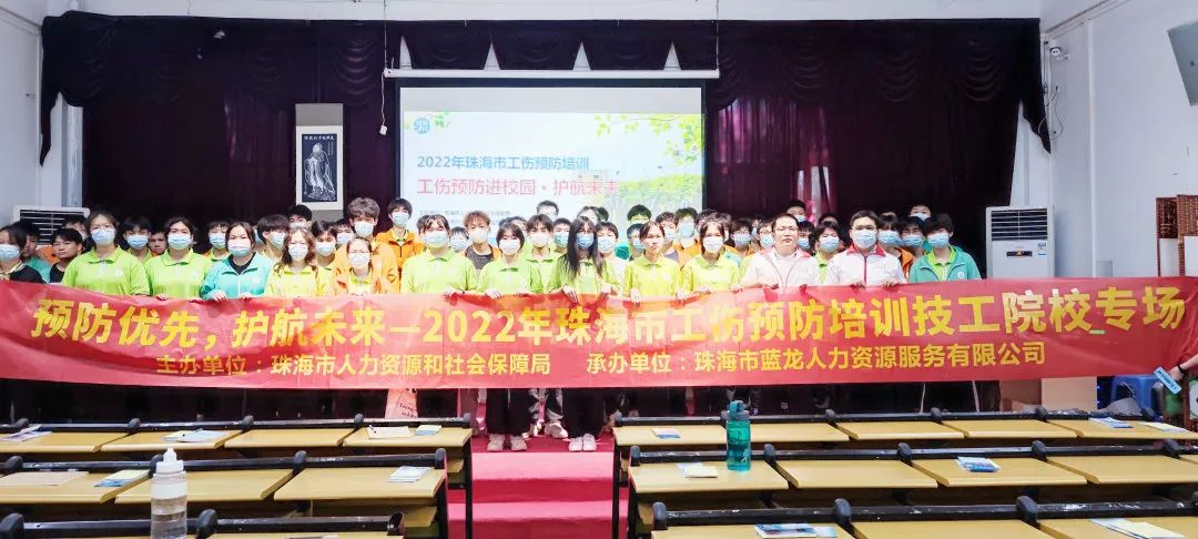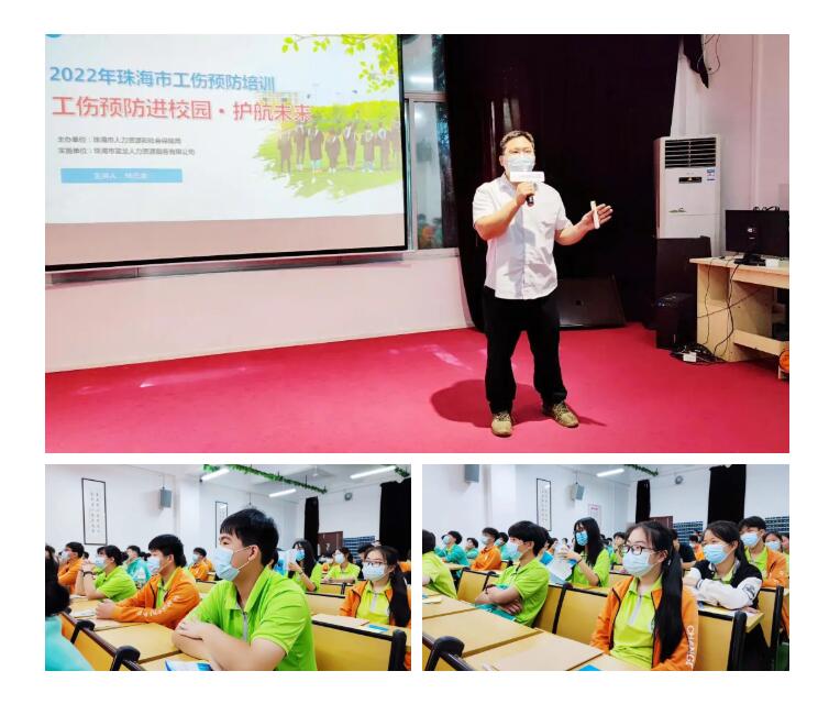 珠海市人力资源和社会保障局林志金为师生带来了精彩的工伤预防培训课,内容涵盖“工伤保险基础知识”“工伤发生原因分析”“如何做好工伤预防”三大方面内容。