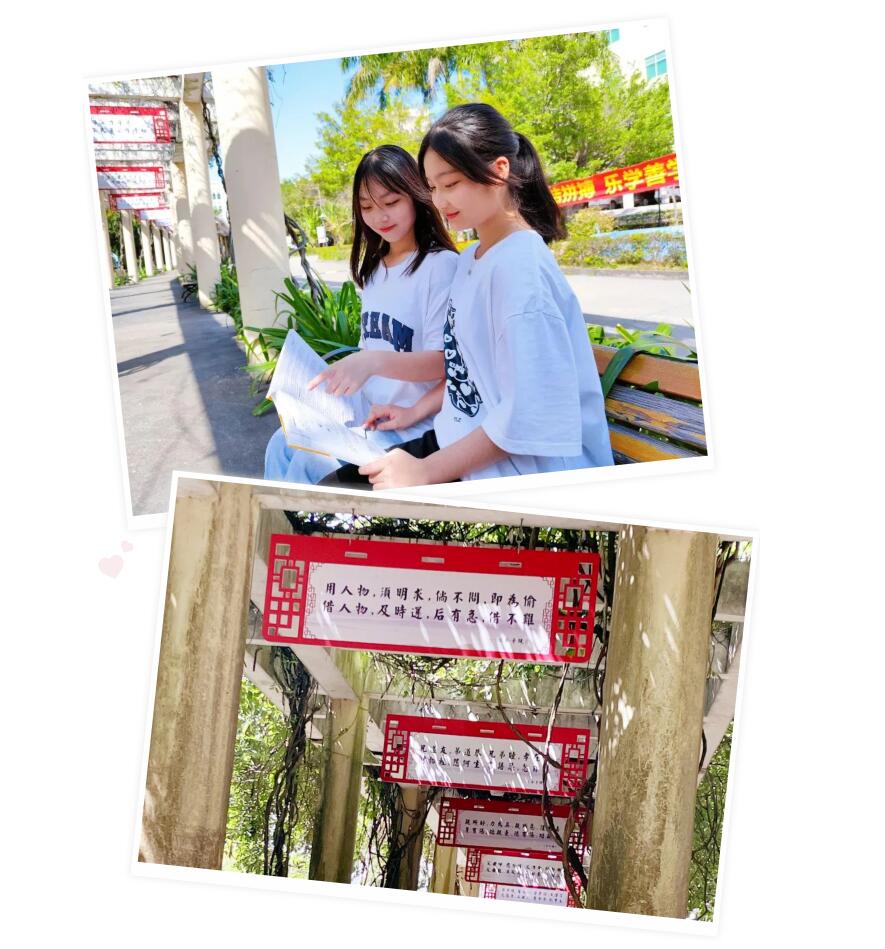 漫步长廊,中国传统文化渗透其中,随处可见优美诗词、先贤圣言,聆听他们的谆谆教诲。