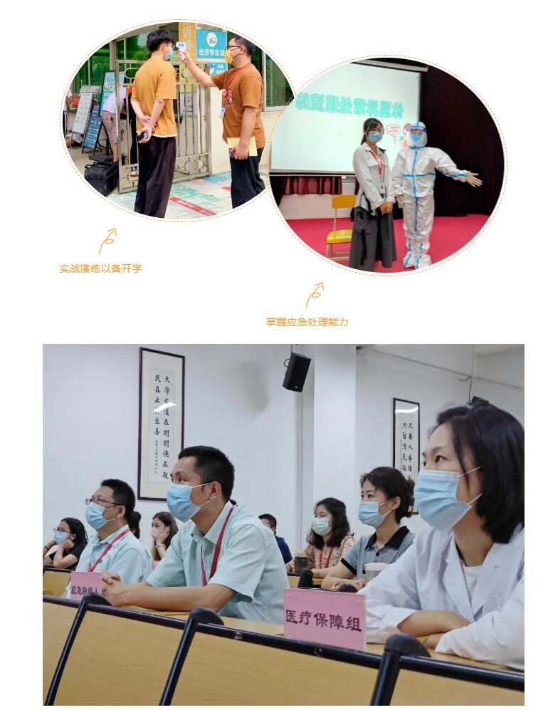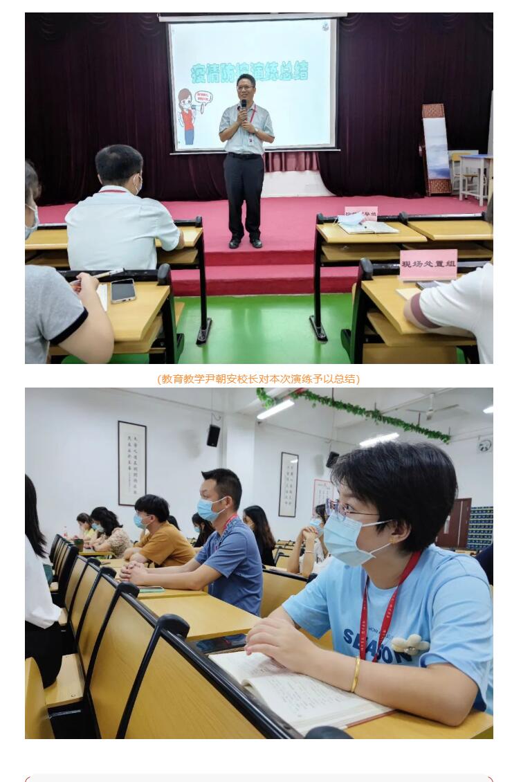 以“演”促防,以“练”备战。通过对各项场景的反复演练,检验开学预案的有效性和科学性,我校将继续高度重视,进一步完善优化校园疫情防控各项工作机制,从严从细做好校园疫情防控常态化工作,让校园疫情防控更加到位,健康、平安地迎接新学期和学生们的到来!