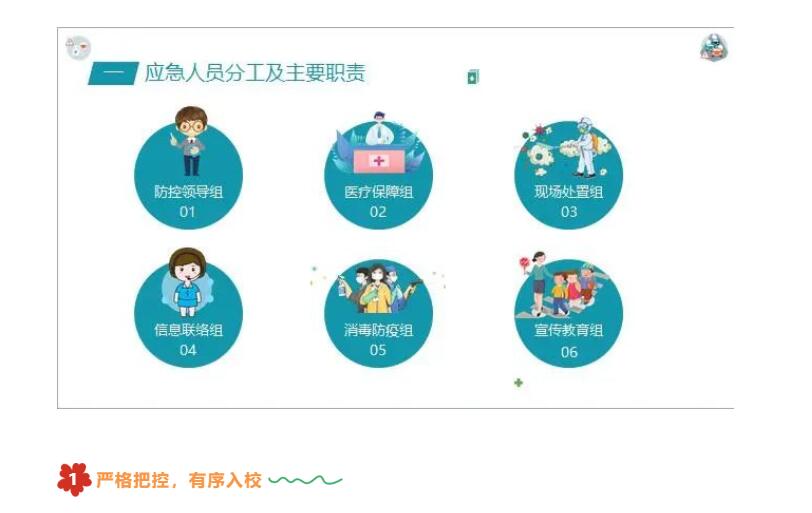 校园防疫重于泰山,师生健康高于一切。学校防控领导小组细致部署、认真制定周详演练方案,并在演练前专门组织了一场疫情防控工作专项培训,详细说明演练过程各岗位职责,由医疗保障、现场处置、消杀防疫、心理疏导以及宣传教育等多个责任小组通力合作,确保疫情演练有序开展。