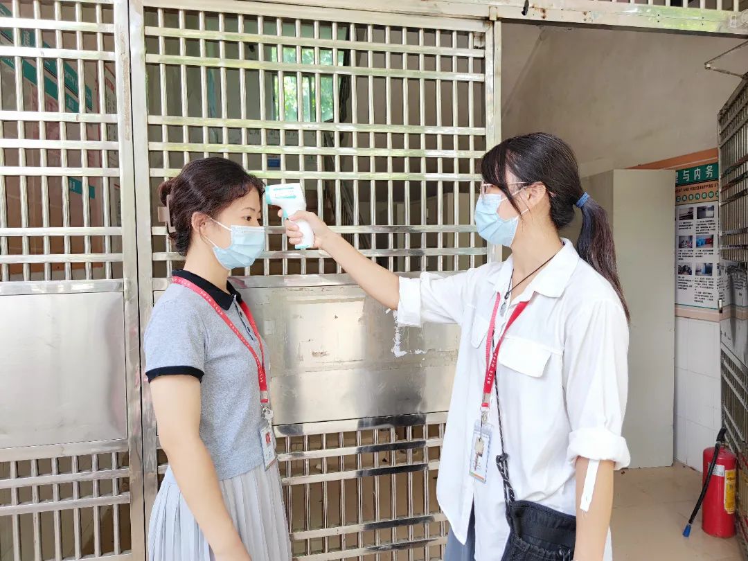 每日进行晨午晚三检,监测学生健康。上课不慌不乱,由班主任组织同学们进行体温测量,做好记录,消毒入室,隔位就坐,保持安全距离!