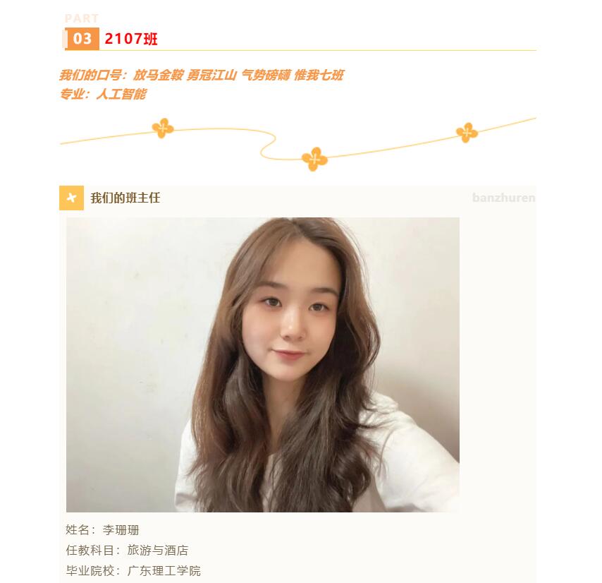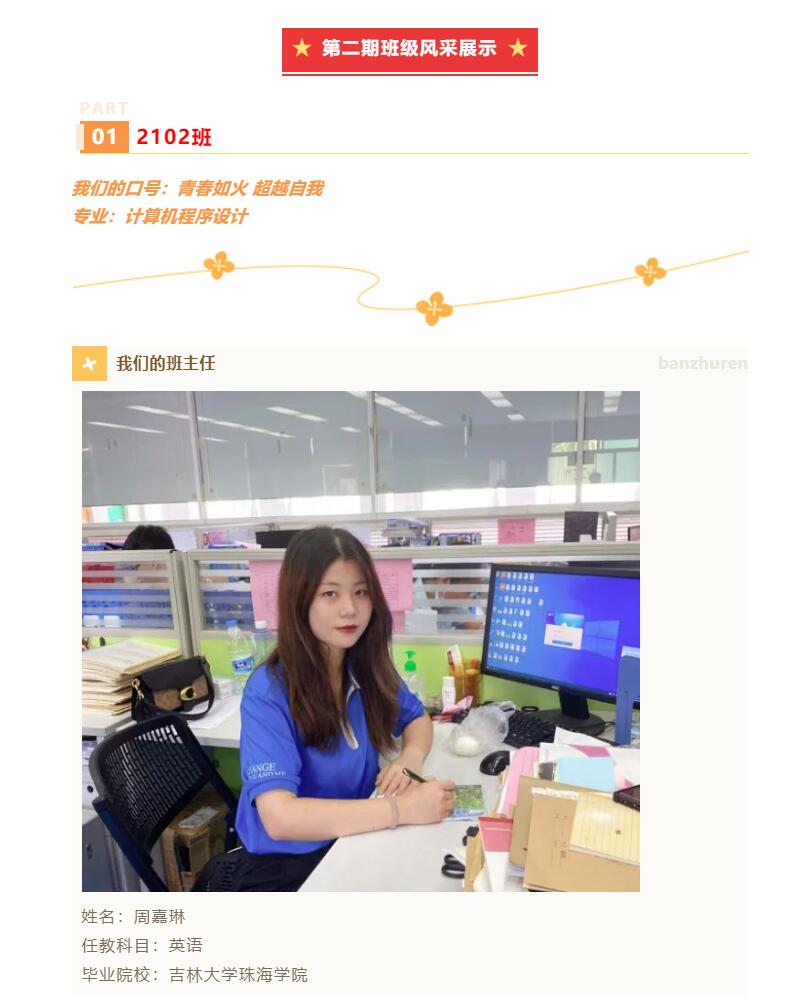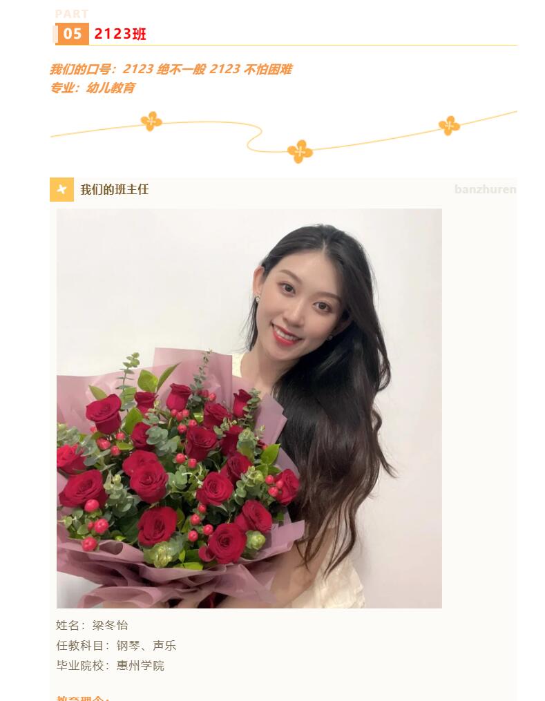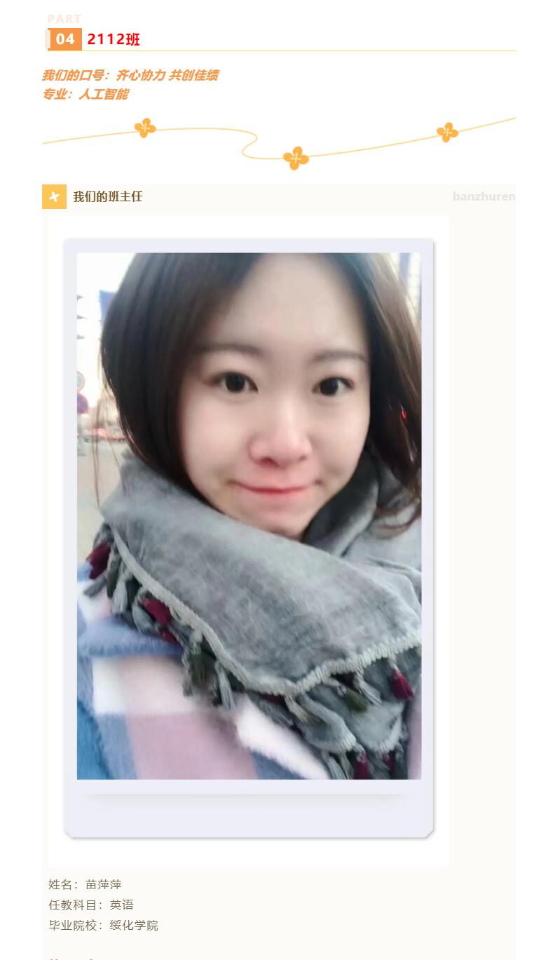 鲜衣怒马少年时,不负韶华行且知。我希望在我的引导下,2112班的孩子们,能培养负责、自律、诚信等自我管理的能力,全面发展。