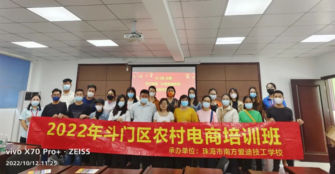 赋能乡村振兴,培养电商达人,10月12日,由斗门区白蕉镇人力资源和社会保障服务所联合南方爱迪技工学校举办的“抖音直播带货”技能培训班圆满结营,以实战培训乡村人才,用实干带领村民致富,加快发展农村电商,为乡村振兴提供新动能、新载体,开启创业致富、产业兴旺新通道!