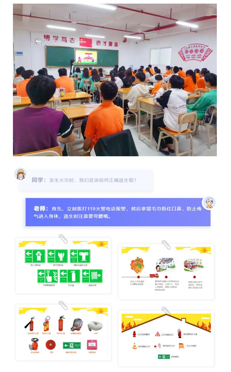 演练前,学校制定了科学严谨的演练方案,并在班级召开消防安全教育和应急演练的主题班会,各班通过PPT、图片、视频等形式让学生了解此次演练的意义,强调演练的注意事项,详细讲解撤离方向、逃生路线、撤离集合区域等。学?;乖诟鞲雎ヌ菘诘裙丶恢冒才攀璧祭鲜?,为安全、快速、有序疏散做了充分准备。