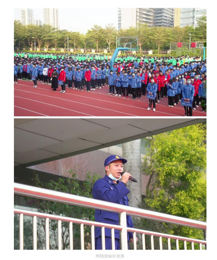 短短几十秒,全体师生疏散完毕,演练正式结束。斗门区消防救援大队联合白蕉镇专职消防队站长——何结龙对本次演练给予充分肯定,他从细节之处给现场师生提出专业指导意见,强调以练为战,居安思危,警钟长鸣,才能真正实现消防演练的目的。