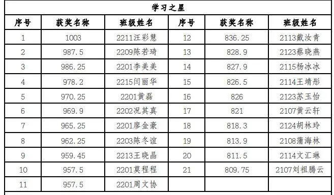 2021、2022级学生干部、文艺体育之星、文明礼仪之星和劳动之星