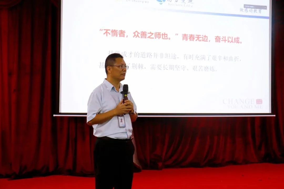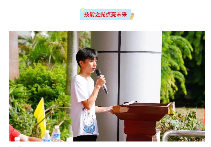 榜样是一面旗帜,鼓舞斗志,南方爱迪少年奋力行。211班胡国志同学代表新生发言。他从自身经历出发,分享自己与技能结缘,倾注努力战胜学习困难,收获成长与荣誉的故事,激励同学们志存高远,脚踏实地,掌握技能,练就技能,祝愿同学们在新的学期点亮技能之光,成就美好的未来。