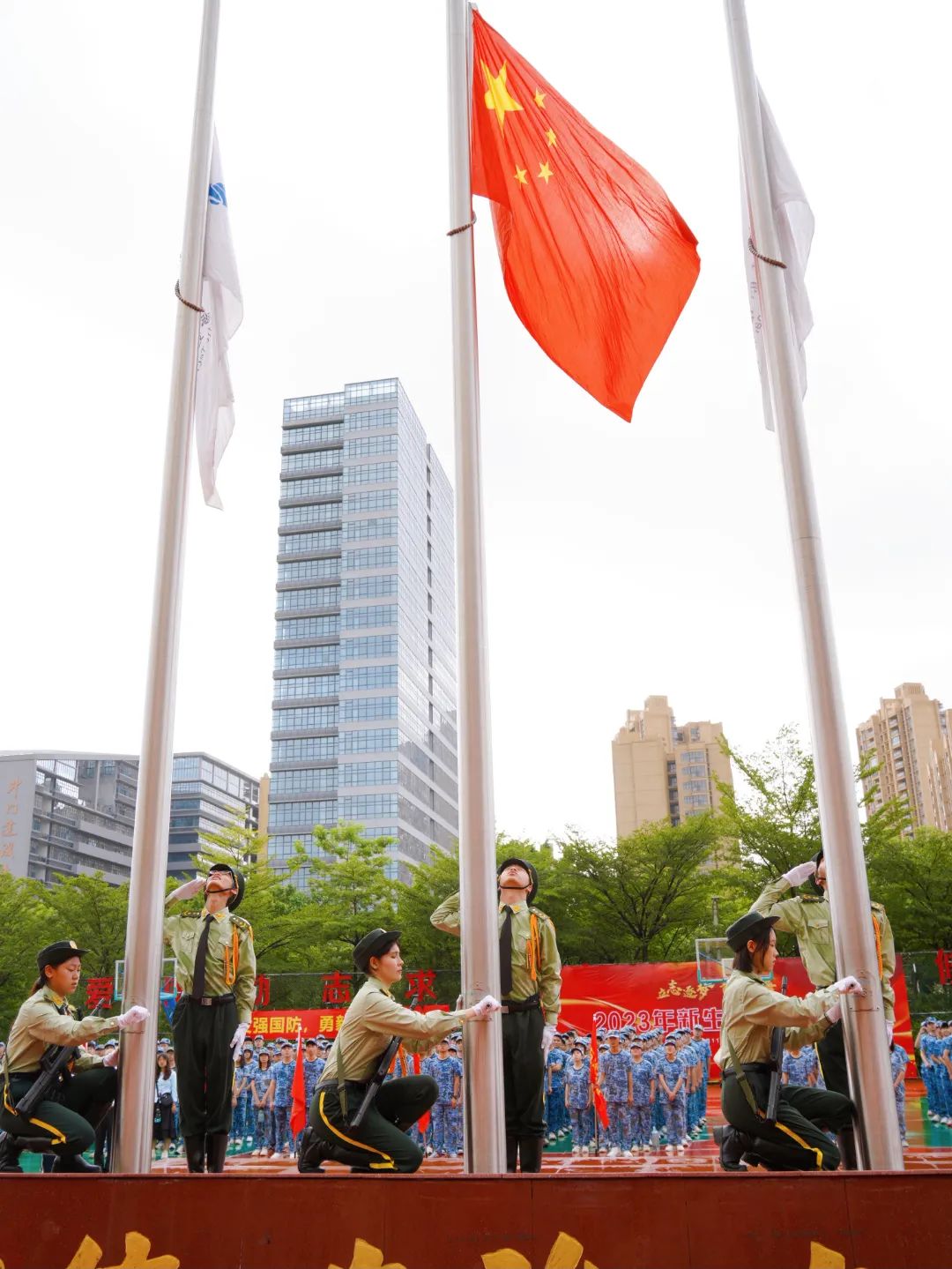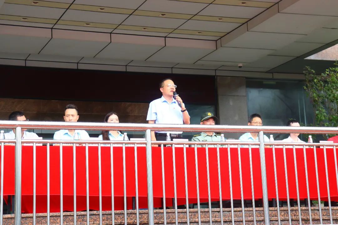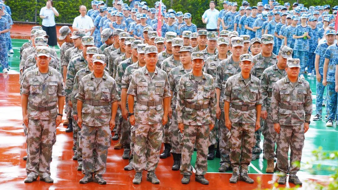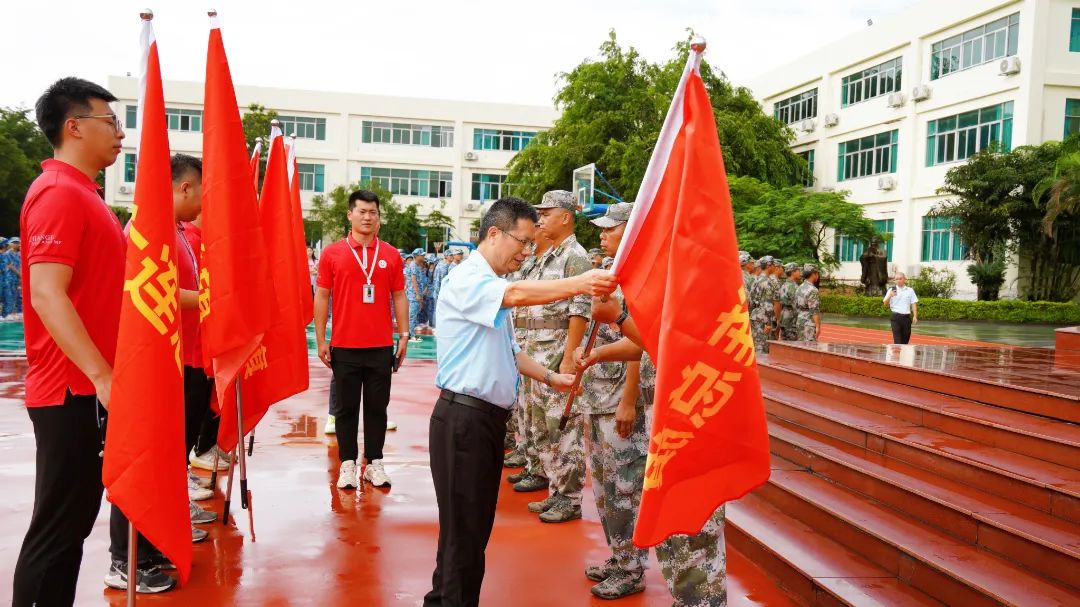 红旗迎风,队伍严整,党支部书记莫拥军宣布:2023级新生军训正式开始!青春铸军魂,热血绽芳华,2023小萌新们为期7天的丰富多彩军训生活正式开启!