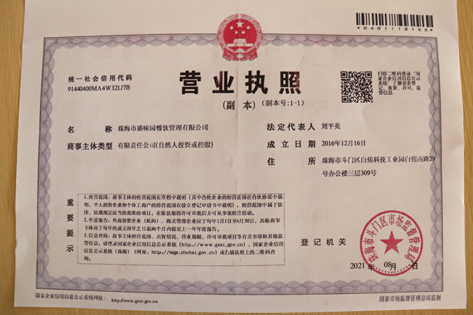 本校饭堂营业执照