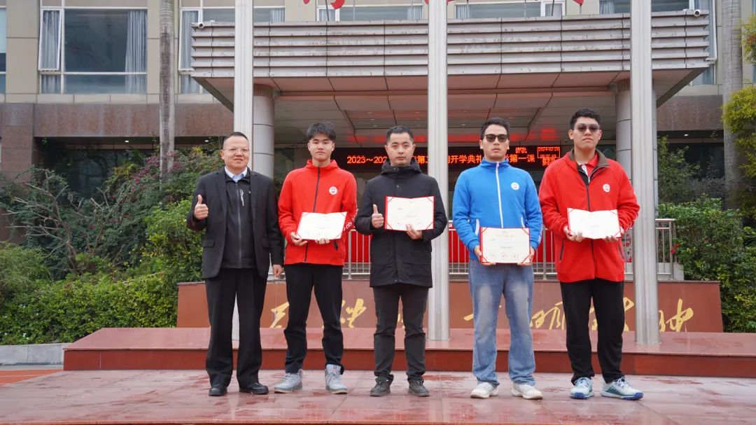 典礼上,学校对2023年世界机器人大赛总决赛无人机应用职业技能赛中表现突出的学生和指导老师进行表彰,希望他们再接再厉,也希望所有同学能以他们为榜样,不断超越自己!