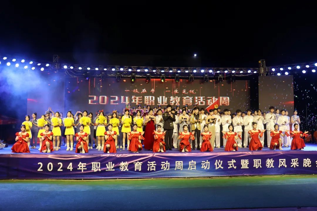 为学习贯彻习近平新时代中国特色社会主义思想,深入宣传贯彻党的二十大精神、习近平总书记关于职业教育的重要指示精神和全国职业教育大会精神,大力弘扬劳动光荣、技能宝贵、创造伟大的时代风尚,提升学生职业技能和职业素养,5月26日晚,我校隆重举行2024年职业教育活动周校园开放日暨职教风采晚会,为全校师生及社会各界人士带来了一场精彩纷呈的职教盛宴,唱响新时代职业教育的奋进之歌。