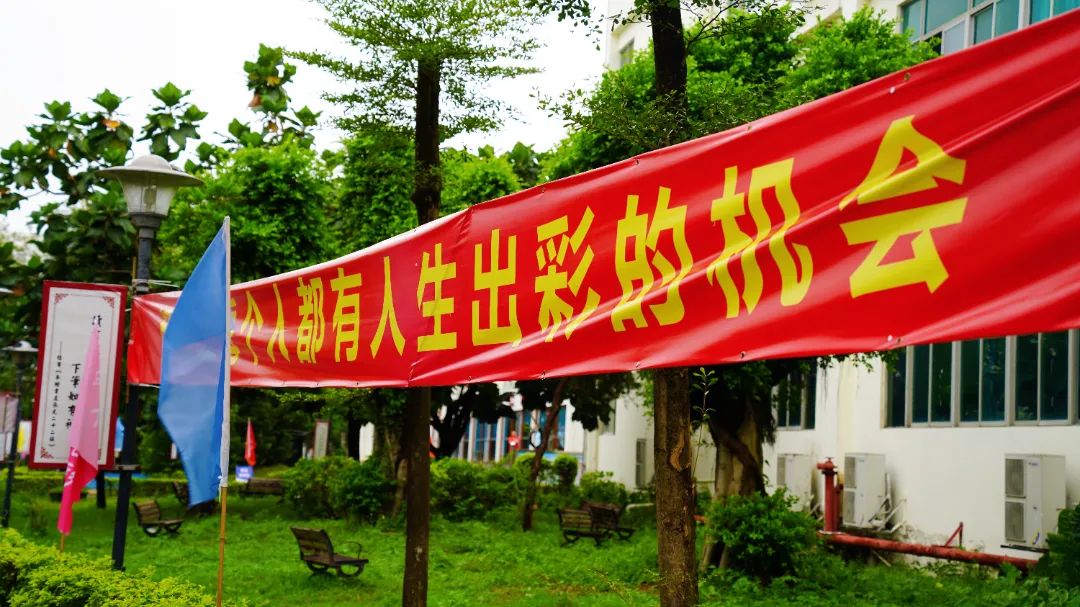 校园内彩旗飘飘、热情高涨