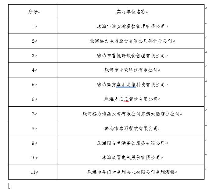 珠海市南方爱迪技工学校 2023年实习生实习单位公示