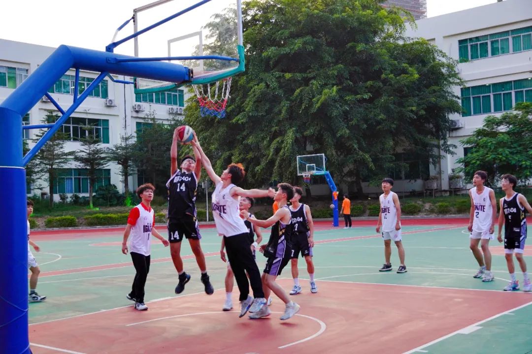 篮球,不仅是运动,更是青春的象征。本次篮球赛不仅是一场体育竞技的较量,培养学生热爱体育,热爱运动的习惯以及高尚的体育竞技精神,促进了班级之间的交流与合作,更是一场青春与热血交织的盛宴,勾勒出秋日风光下竞技、团结、拼搏与坚持的热血画卷。