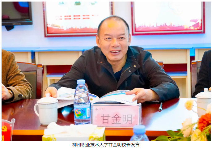 随后,柳州职业技术大学甘金明校长也发表了讲话。他介绍了学校的基本概况以及在技能人才培养方面取得的成果,并表达了与斗门区开展深度合作的强烈意愿,希望通过双方的共同努力,推动两校人才培养、师资提升、产教融合的创新与发展。