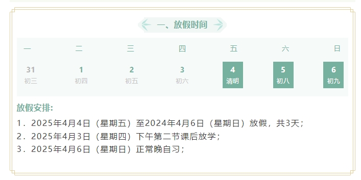 您好!桃柳争妍清明临,追思怀远正当时!清明假期将至,在这缅怀先辈、寄托哀思的重要时节,为了确保孩子们能度过一个安全、文明、有意义的假期,现就假期安全相关事宜致信家长。