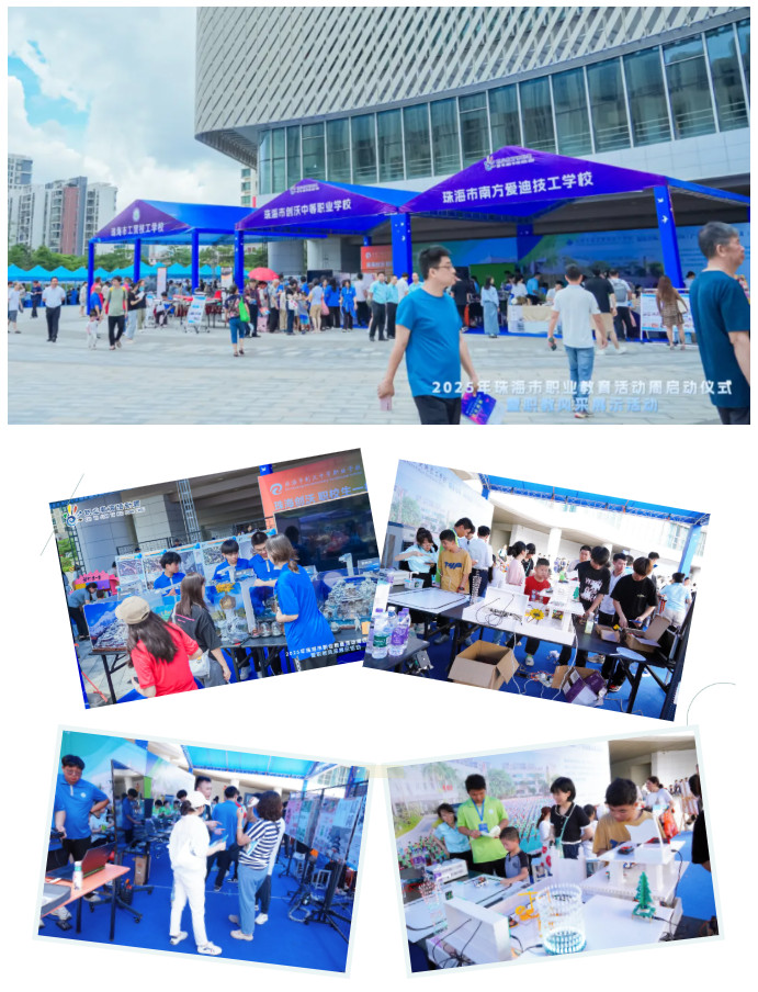 五月的珠海,椰风海韵间跃动着青春的脉搏。5月18日,2025年珠海市职业教育活动周启动仪式暨职教风采展示活动在红旗镇文体中心隆重举行,全市职教院校齐聚一堂,以“一技在手,一生无忧”为主题,共绘职业教育改革发展的斑斓画卷。作为珠海职教领域的重要一员,我校携三大专业群、多项创新成果亮相,通过动态展演与静态展示相结合的方式,全方位呈现产教融合培养模式下的教育成果。